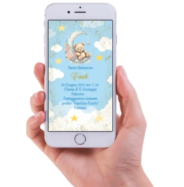 Invito Digitale Battesimo orsetto sulla luna