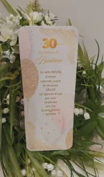 L'invito realizzato in cartoncino gr.200 pregiato misura 12 x 18 completa di busta.