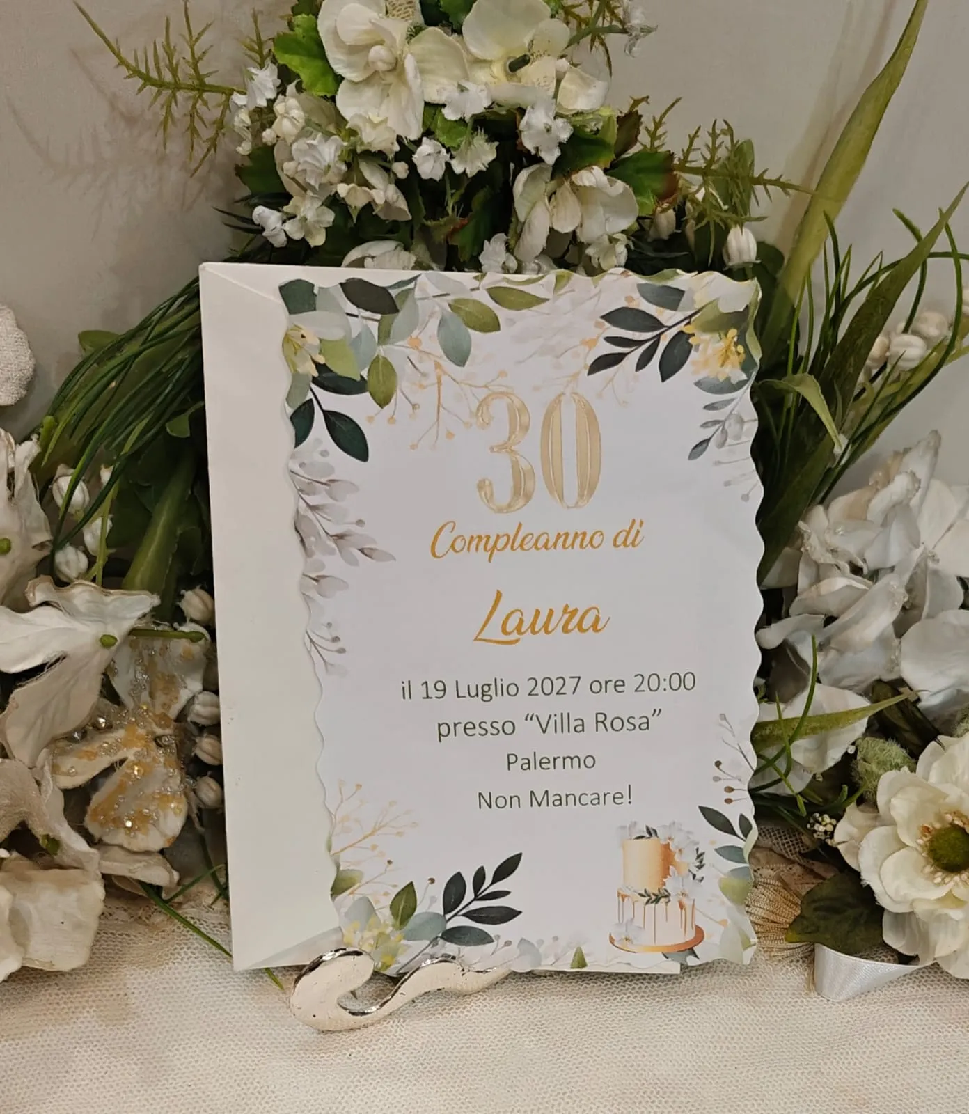 L'invito realizzato in cartoncino gr.200 pregiato misura 12 x 18 completa di busta.