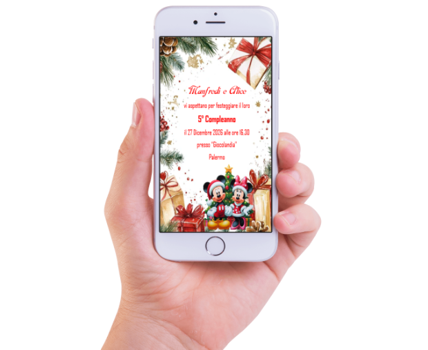 Invito Digitale Compleanno Topolino Natalizio gemelli