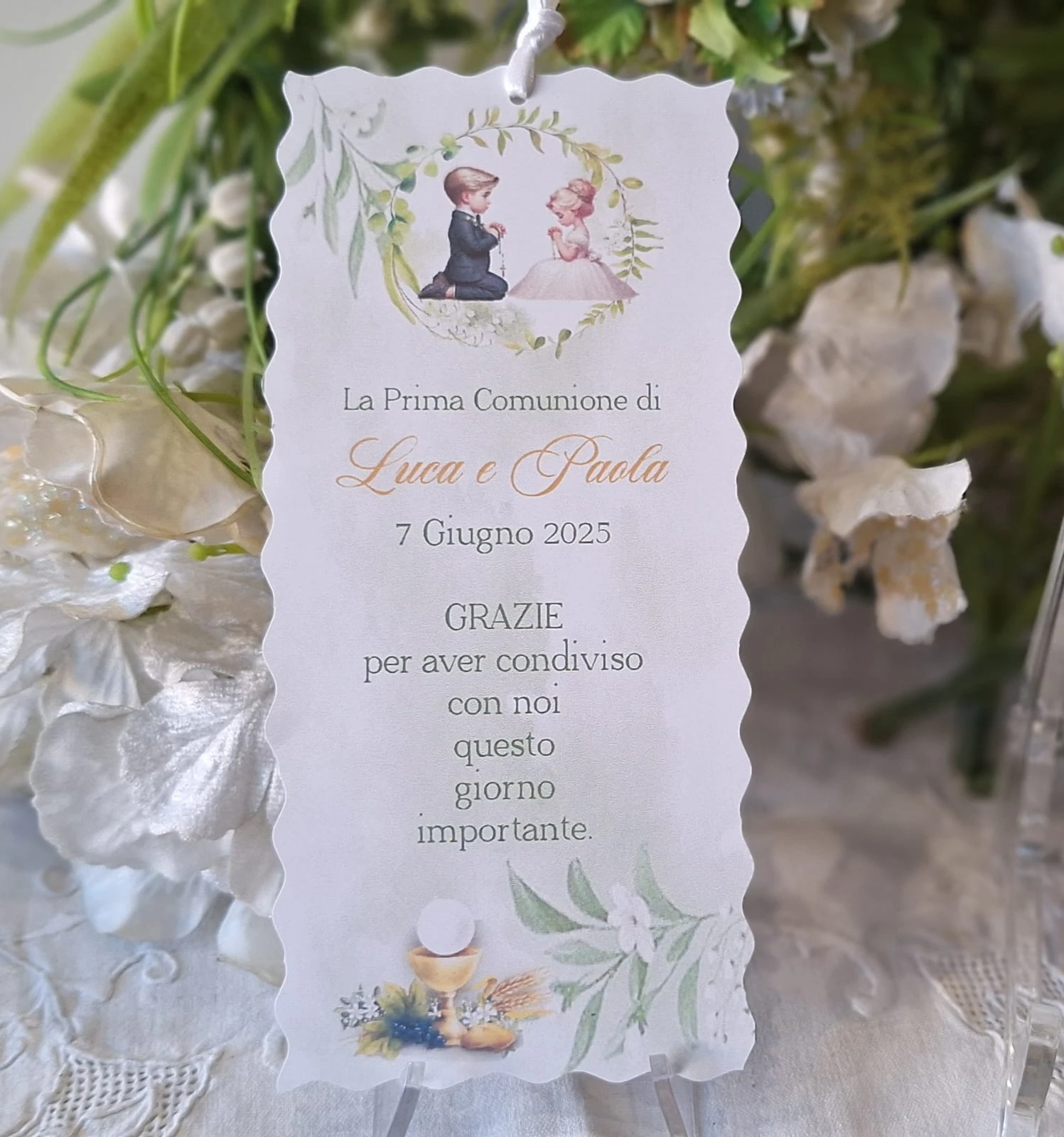 Invito prima comunione, è realizzato in cartoncino pregiato misura 12x18 completo di busta l'invito è coordinabile con segnalibro, Menù, Segnagusto, Cono, Segnaposto ecc.. I nostri inviti sono inediti . Dopo l'ordine vi verrà trasmessa bozza gratis è dopo l'approvazione andrà in stampa. La spedizione avviene con corriere tracciabile. per qualsiasi chiarimento non esitate a contattarmi tramite wp al numero 3277669580.