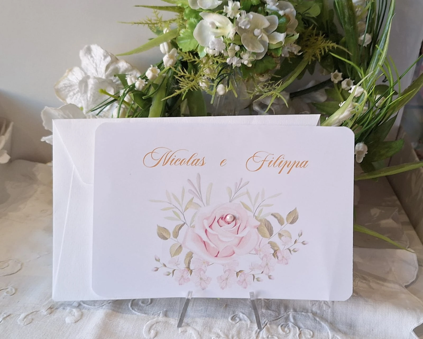 Partecipazione di Nozze realizzato rettangolare in cartoncino Pregiato lucido gr. 200 gr. Bianco