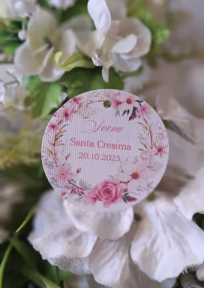 Bigliettino rotondo personalizzato per Nozze da attaccare alla bomboniera,